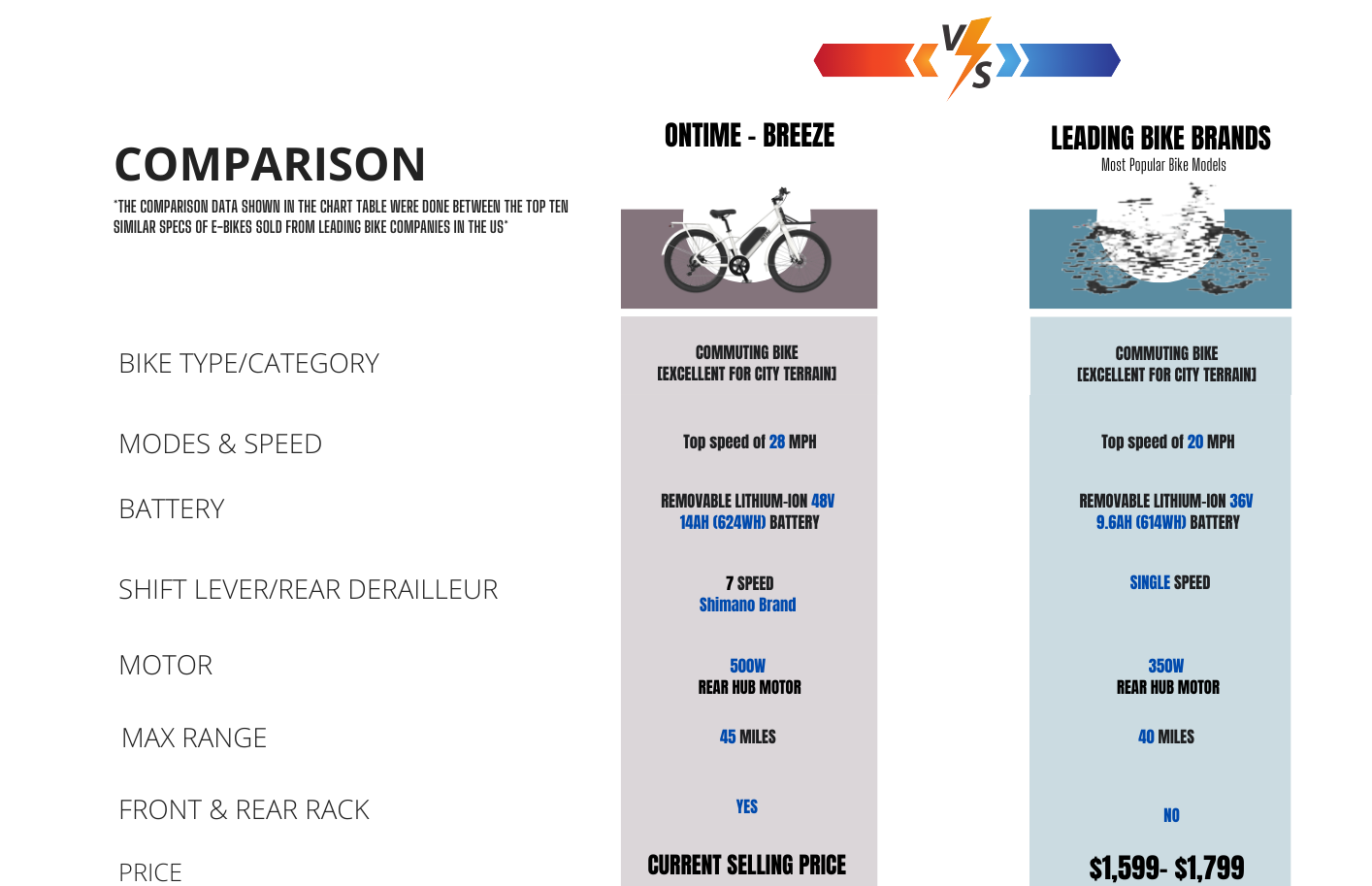 Breeze - a powerful commuter e-bike that fosters elegant design and features that carries out a smoother riding experience. With the exceptional handling power of a 500 Watt rear hub motor high capacity battery. Breeze is empowered to meet your need for an electric bike.